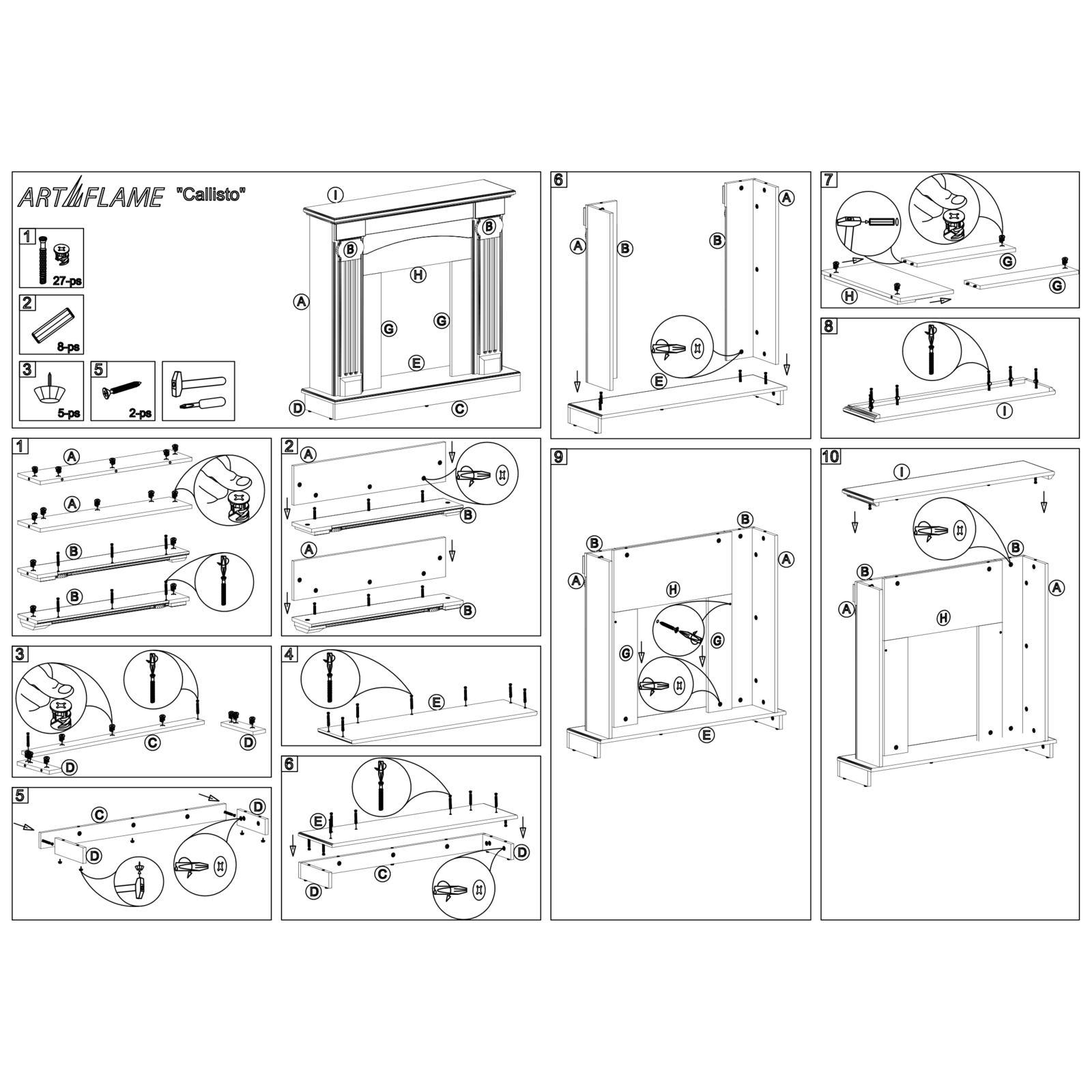 Pagina principală Șeminee electrice cu mobilier Standard Șemineu electric Calisto & Cristina, Art Flame, 1020x1100x300 mm, 2000W, 2 trepte de încălzire, 5 niveluri ale intensității flăcărilor, Timer