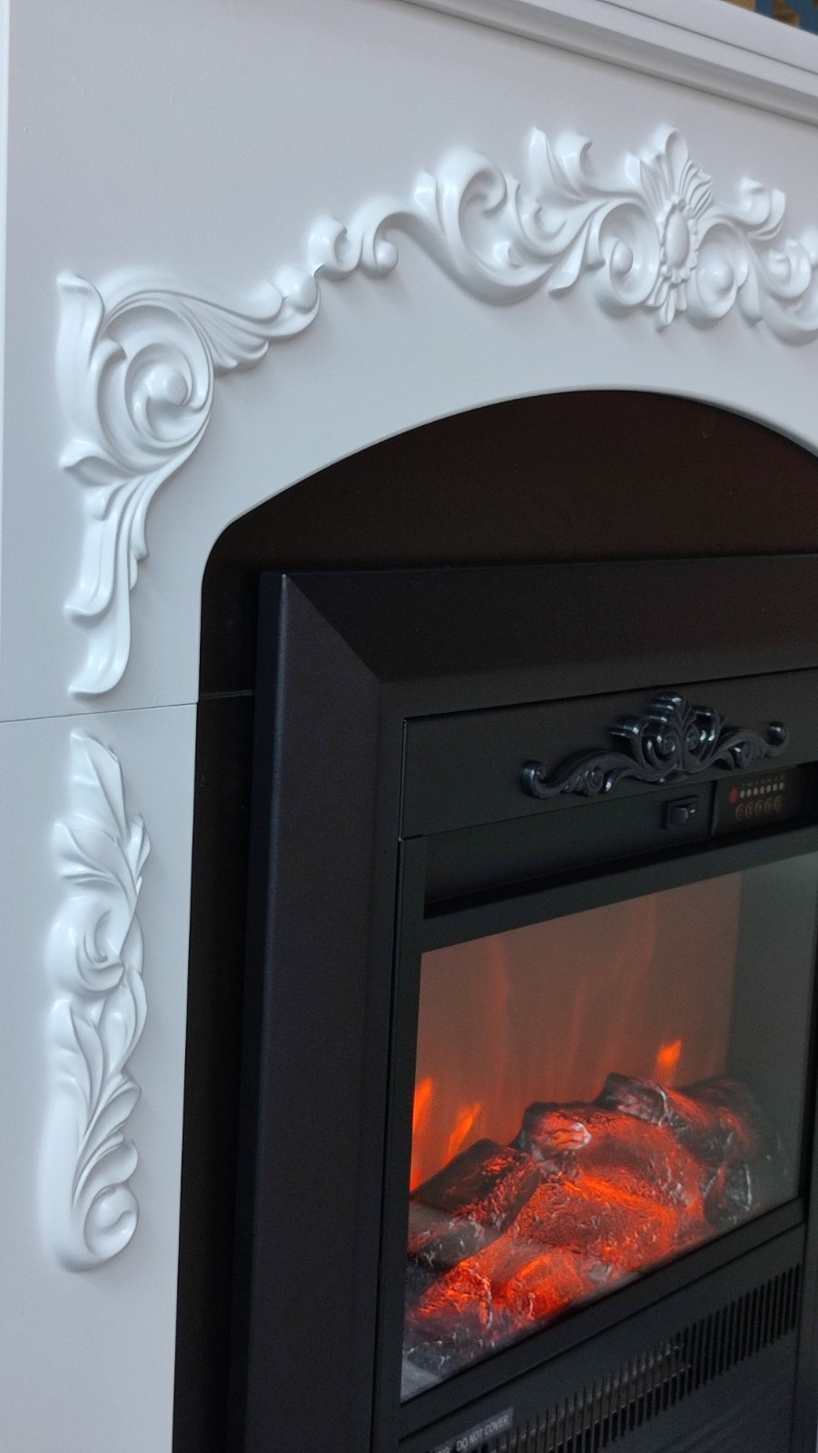 The Kazanovo portal is made in white and black. The upper part of the product is decorated with three-dimensional patterns, and the frame near the hearth and the lower part of the portal are painted black, which creates harmony and comfort. The product itself is made of such material as painted MDF.