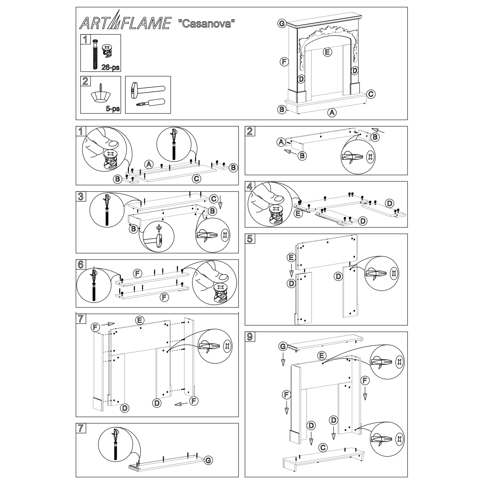 "Casanova & Galileo Gold" is a classic model of high quality fireplace sets from the European brand Art Flame.