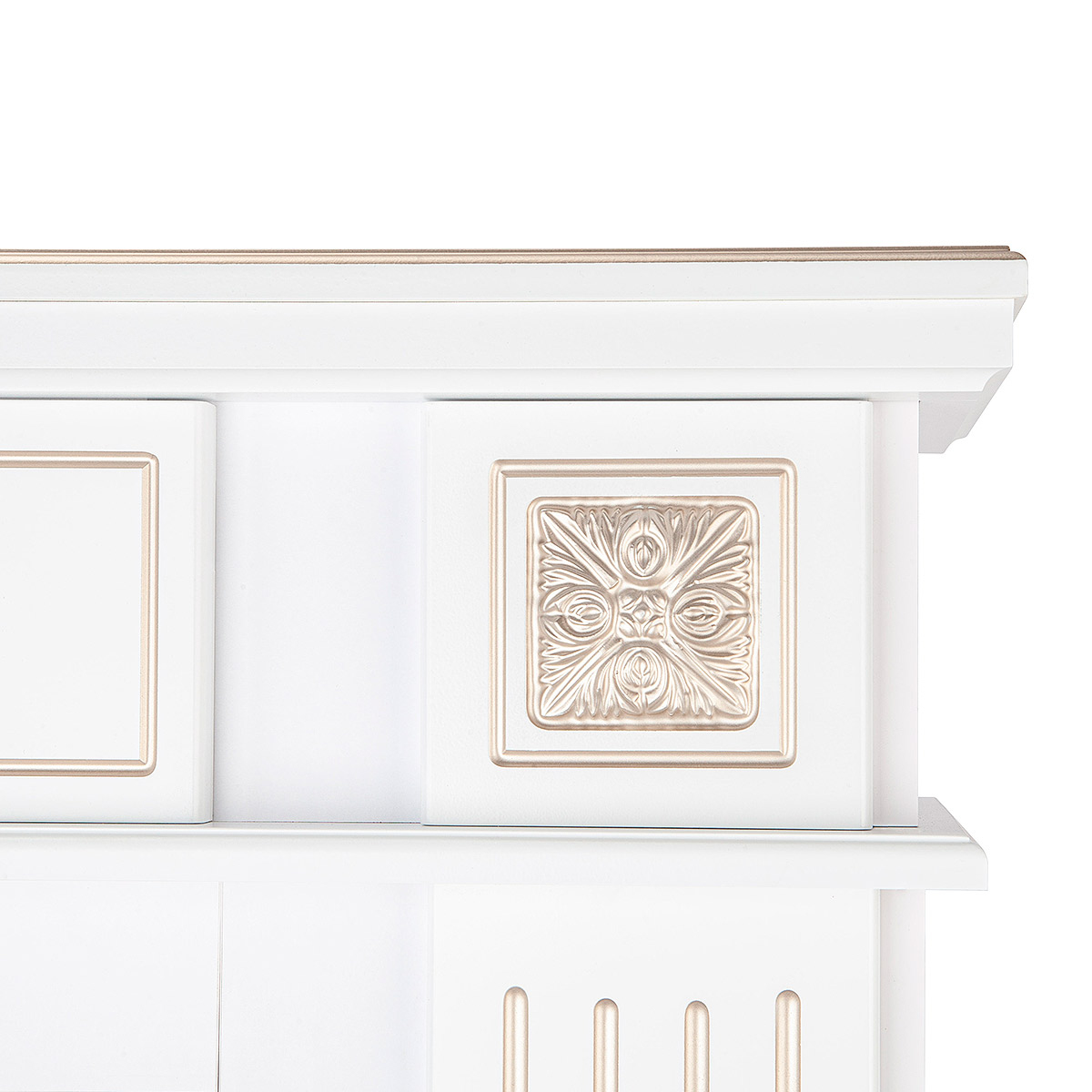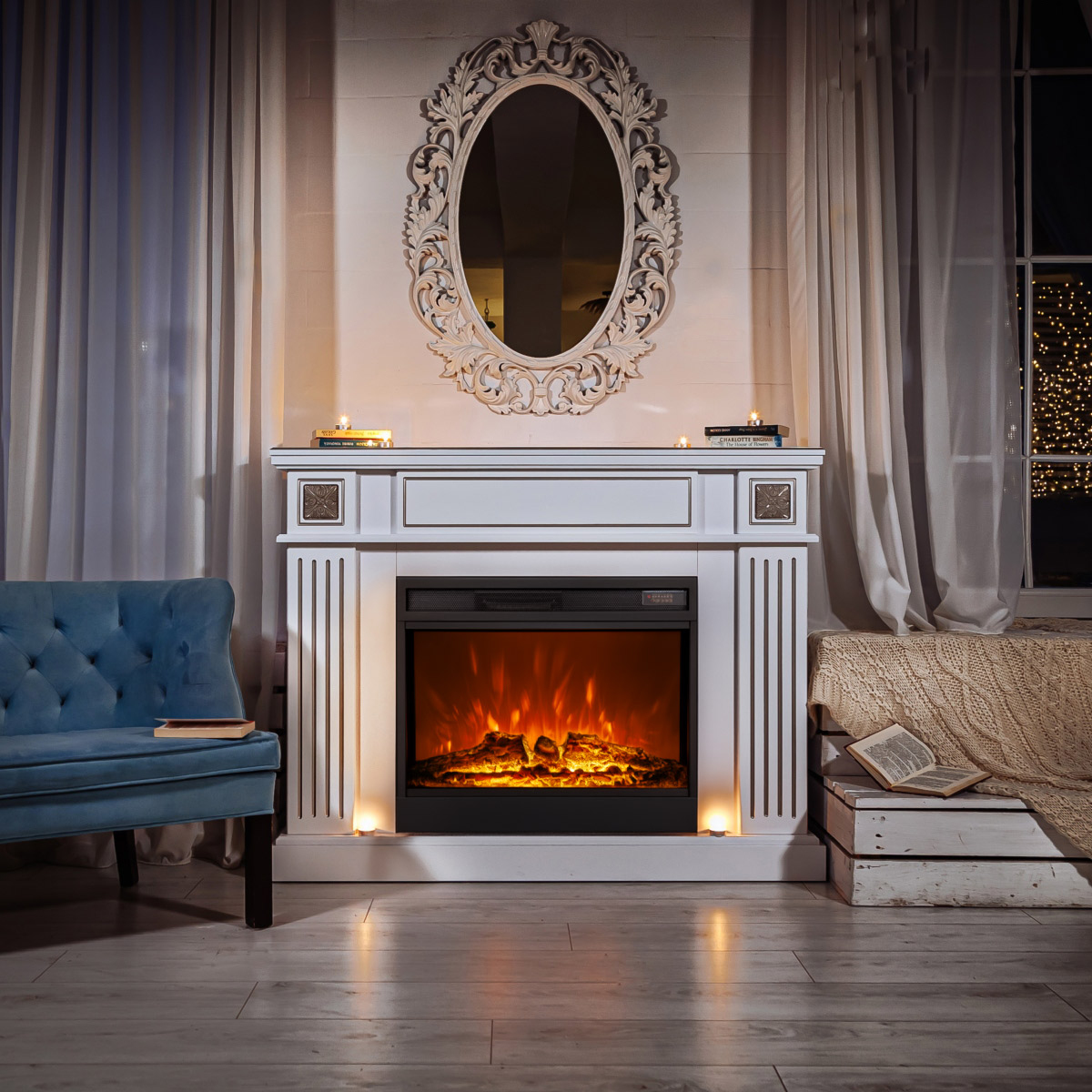 The Napoleon fireplace is made from high quality MDF. Fireplace sets do not require special installation skills, as they are delivered assembled and ready for use. The Napoleon fireplace will be the pearl of your home. The Napoleon portal perfectly combines classic and modern styles. It is made on white with silver patina with an elegant frame on the columns.