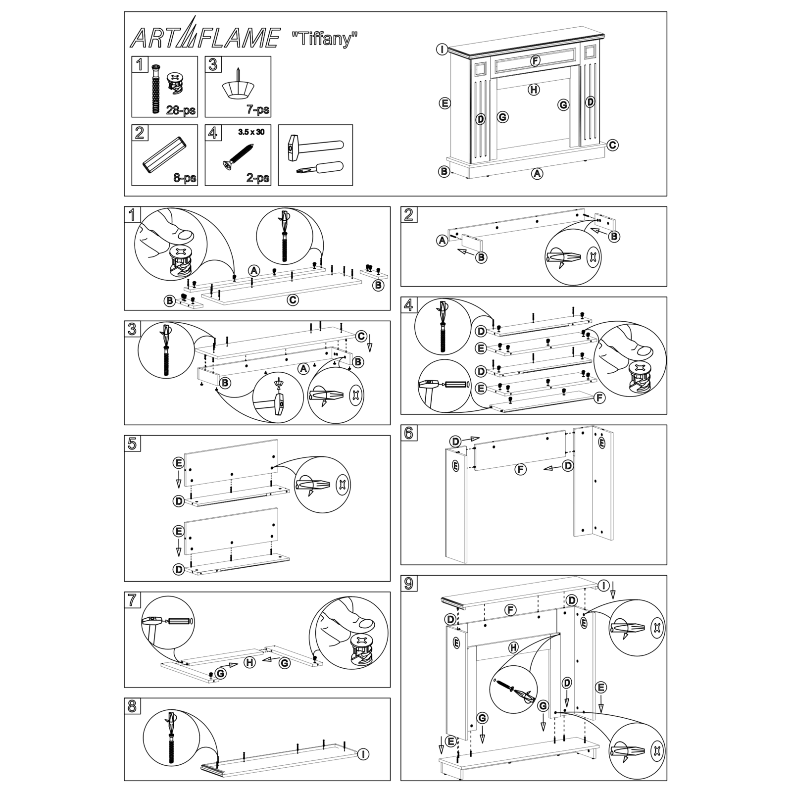 Homepage Electric Fireplaces with Mantels Economy Electric fireplace Tiffany & Lorance, Art Flame, 850x1100x270 mm, 1500W, 3 flame colors, 2 heating levels, 5 flame brightness levels